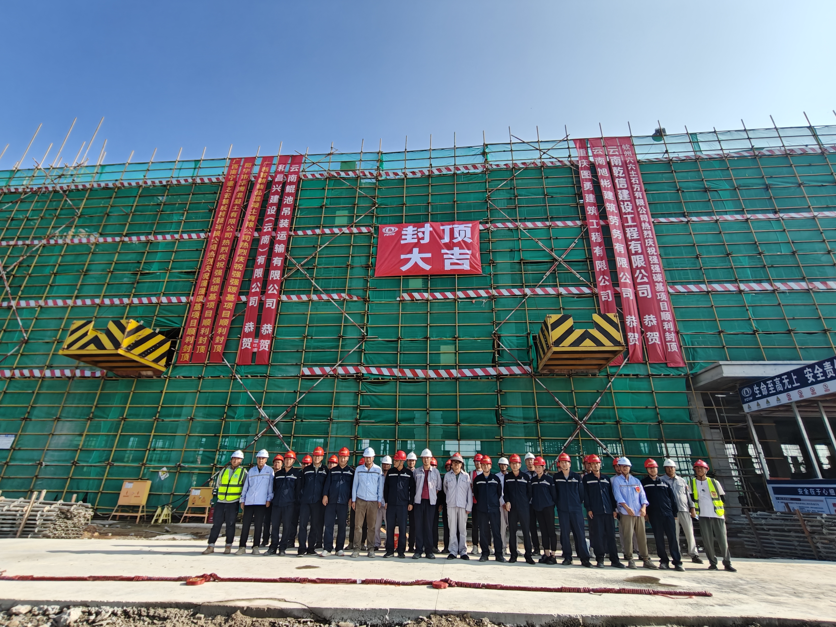 10月11日上午,廣西欽州市欽南區(qū)金窩工業(yè)園內(nèi)掌聲雷動,鞭炮響亮,公司承建的廣西廣投強強碳基項目首棟主體單元(食堂及倒班宿舍)順利封頂,這標志著項目建設(shè)取得階段性進展,為后續(xù)工程推進奠定了堅實基礎(chǔ)。業(yè)主、總包、監(jiān)理單位主要領(lǐng)導(dǎo)出席封頂儀式。